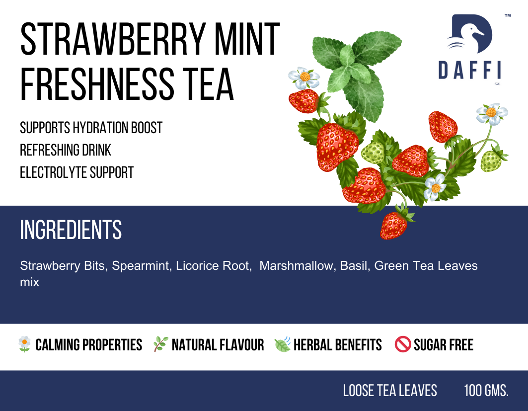 The Hydration Boost Kit contains 4 pouches of Strawberry Mint Freshness Tea designed to support hydration and natural electrolyte balance. Blended with antioxidant-rich strawberries, refreshing mint, and licorice root, this sugar-free tea helps promote wellness and refreshment through daily consumption. Each pouch yields over 32 cups, perfect for combating the heat or post-exercise hydration. This natural, additive-free herbal tea aims to support the body’s hydration needs as part of a balanced lifestyle, without medical claims.